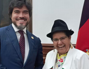El gobernante ecuatoriano viajó a Chile acompañado de su esposa, Rocío González; de la canciller, María Fernanda Espinosa, del ministro de Cultura, Raúl Pérez Torres, y de la ministra encargada de Minería, Rebeca Illescas, entre otros.