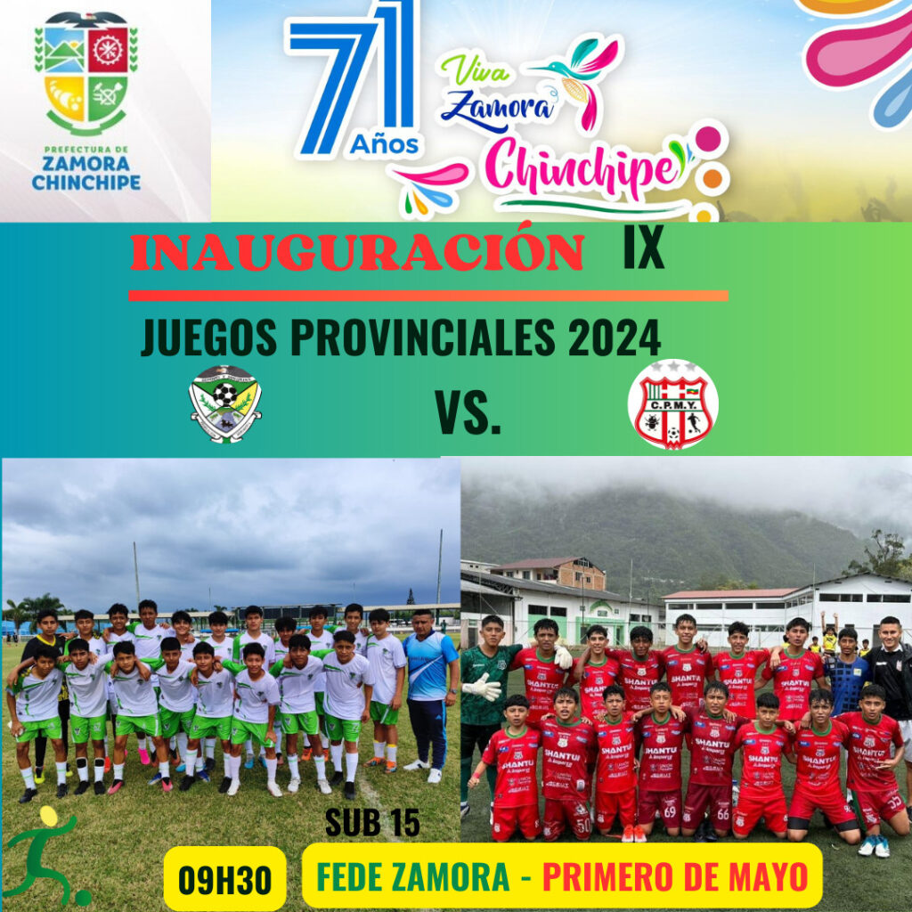 El evento iniciará a las 09h00 en el Estadio de césped sintético del Parque Lineal, con un partido amistoso entre las selecciones Sub 15 de FEDE Zamora y el equipo Primero de Mayo de Yantzaza.