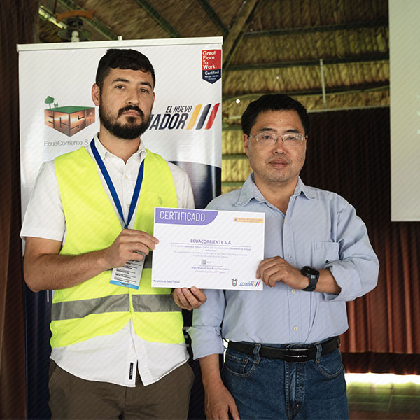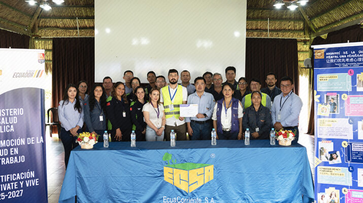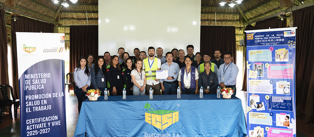 La empresa EcuaCorriente S.A. (ECSA) recibió la certificación “Actívate y Vive” del Ministerio de Salud Pública (MSP). El reconocimiento valora la implementación de un plan enfocado en la salud y seguridad ocupacional de sus colaboradores.