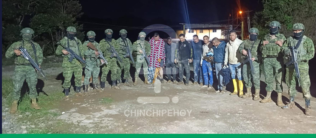 PAQUISHA, 11 de agosto de 2025.– Siete personas fueron rescatadas por personal del Ejército Ecuatoriano durante un operativo en el sector Chinapintza, en la frontera sur con Perú. Las víctimas —dos ecuatorianos y cinco ciudadanos peruanos— fueron encontradas maniatadas en una tranquera de madera.