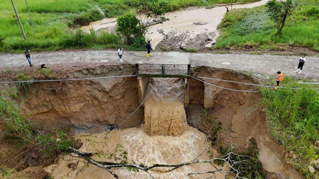 El aumento del caudal de la quebrada, ubicada en la parte alta de la cabecera cantonal, generó inundaciones que llegaron «hasta las rodillas» en las viviendas afectadas. Además, se registró el cierre de varias vías rurales y el colapso de estructuras de puentes en las vías Shakay, Oasis Dos y Santa Rita, lo que complicó el acceso a estos sectores.